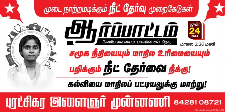 இலட்சக் கணக்கான மாணவர்களின் எதிர்காலத்தைக் குழிதோண்டி புதைத்திருக்கிறது ஒன்றிய பாஜக அரசு.நீட் முறைகேடுகள் வெளியாகி நாடு தழுவிய போராட்டங்கள் நடந்து…