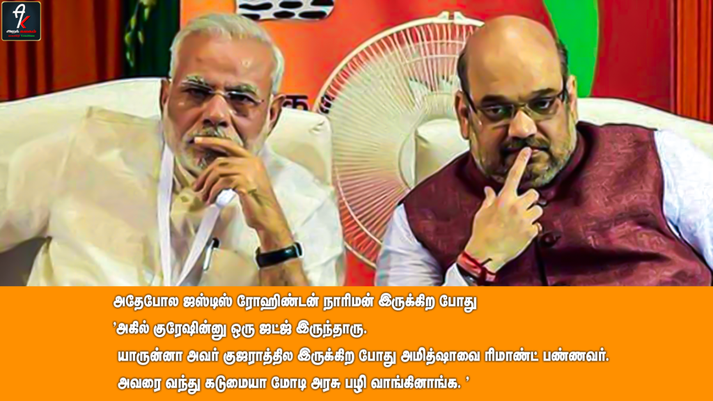 குஜராத்தில இருக்கிற போது அமித்ஷாவை ரிமாண்ட் பண்ணவர். அவரை வந்து கடுமையா மோடி அரசு பழி வாங்கினாங்க. “