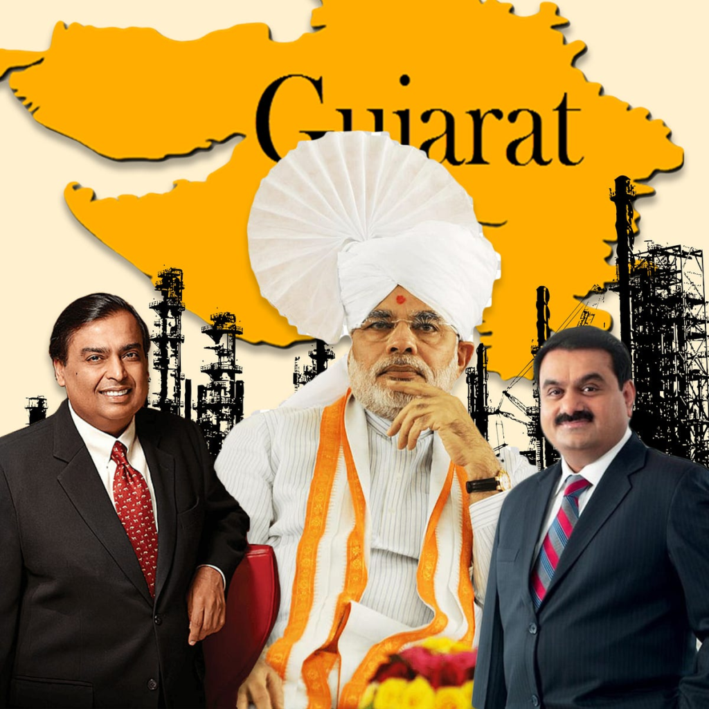 பெரிய நிறுவனங்கள் உழைப்பு மிகுந்த செயல்பாடுகளில் முதலீடு செய்ததோடு மட்டுமல்லாமல், அவற்றின் விநியோகச் சங்கிலியில் பங்கேற்ற குஜராத்தி SME களின் சரிவுக்கும் அவை பங்களித்தன (பெரிய நிறுவனங்கள் வழக்கமாக அவர்களுக்கு சரியான நேரத்தில் பணம் செலுத்துவதில்லை) மற்றும் அவற்றின் செயல்பாடுகளின் முக்கிய கூறுகளை அவர்களிடமிருந்து வாங்க வேண்டியிருந்தது. உதாரணமாக, அதானி குழுமம் போன்ற எரிசக்தி தன்னலக்குழுக்கள், மிக அதிக விலைக்கு மின்சாரத்தை விற்றன. 2004 மற்றும் 2014 க்கு இடையில், குஜராத்தில் 60,000 MSME கள் மூடப்பட்டன.