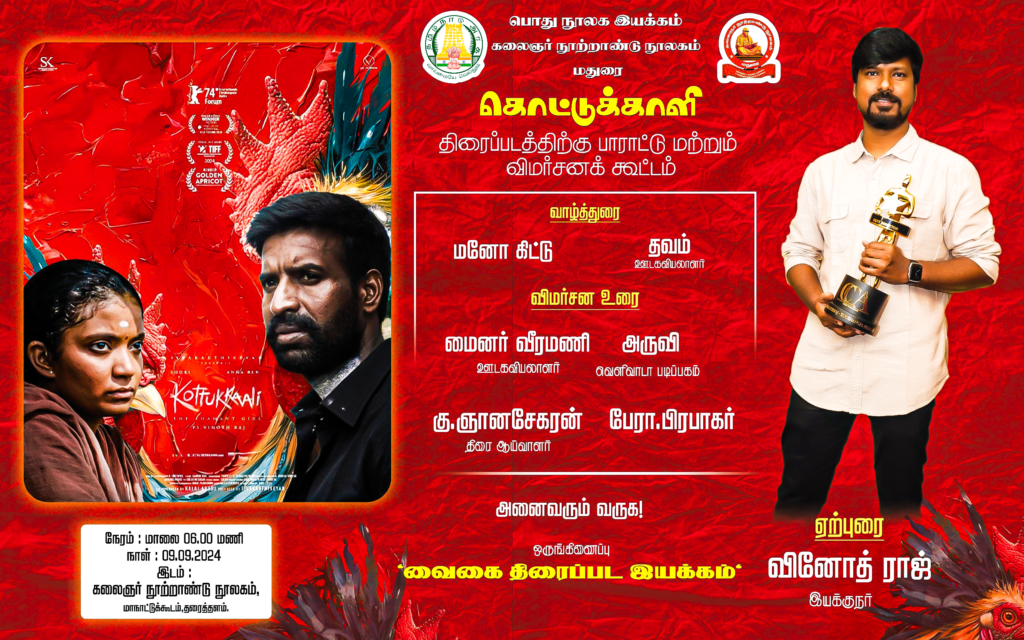 மதுரை கலைஞர் நூலகத்தில் நடைபெறுகிறது இயக்குனர் வினோத் ராஜ் கலந்து கொள்கிறார் வாய்ப்புள்ள நண்பர்கள் அனைவரும் வருக …இன்று மாலை 5.30க்கு