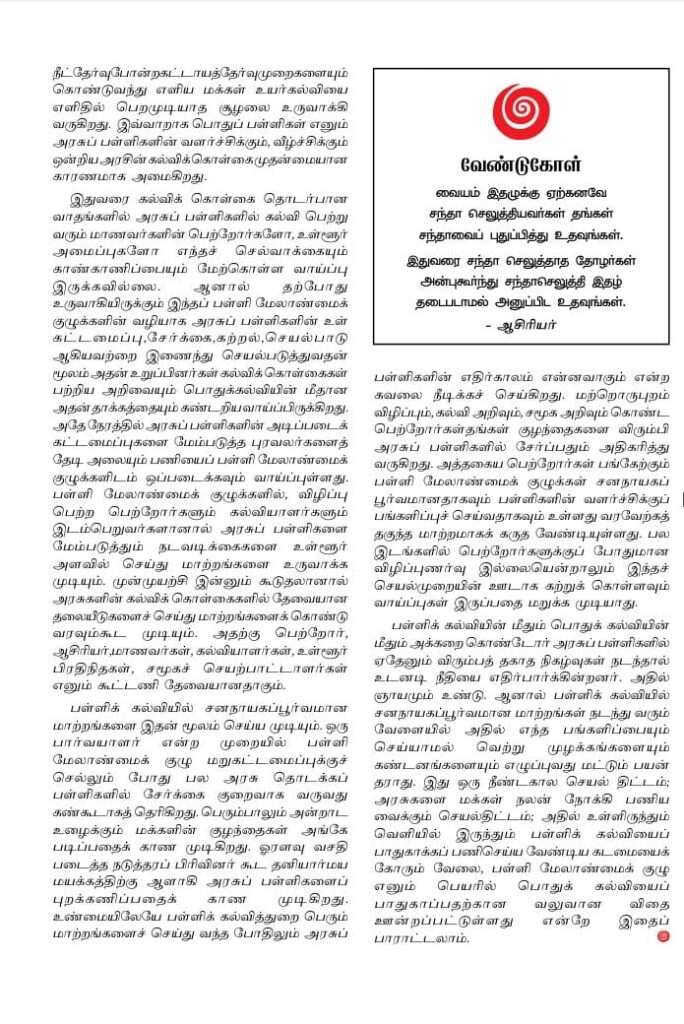 பள்ளி மேலாண்மைக்குழு மறு கட்டமைப்பு நிகழ்வுக்கு பார்வையானாகச் சென்ற பட்டறிவை வைத்து பள்ளி மேலாண்மைக்குழு அது இயங்கும் முறை , செய்ய வேண்டிய பணிகள் ஆகியவை குறித்து ஒரு கட்டுரையாக அக்டோபர் -2024 வையம் இதழில் ஒரு கட்டுரையாக எழுதியிருக்கிறேன்.